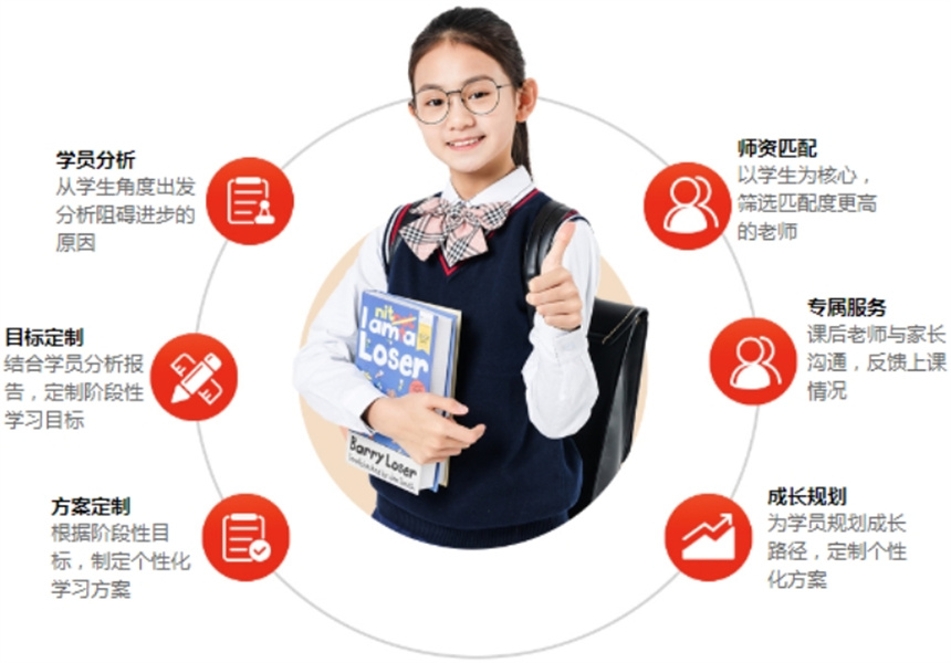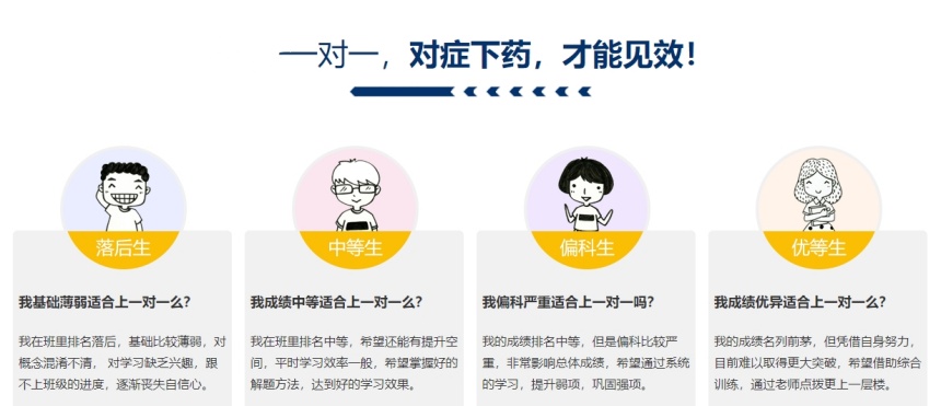 学大教育根据会根据不同学生的基础情况和需求,制定专属化1v1辅导课程,通过入学前测评分析该学生学习薄弱之处和优势之处,针对性辅导学习中存在的问题,实现尽快提分。