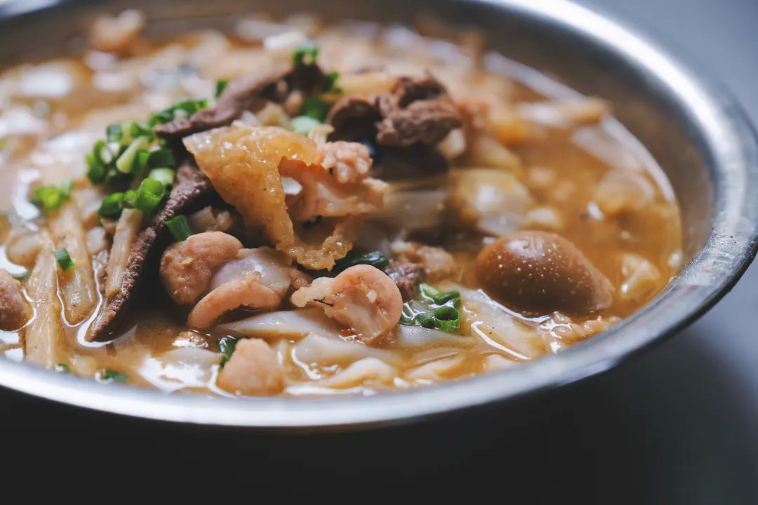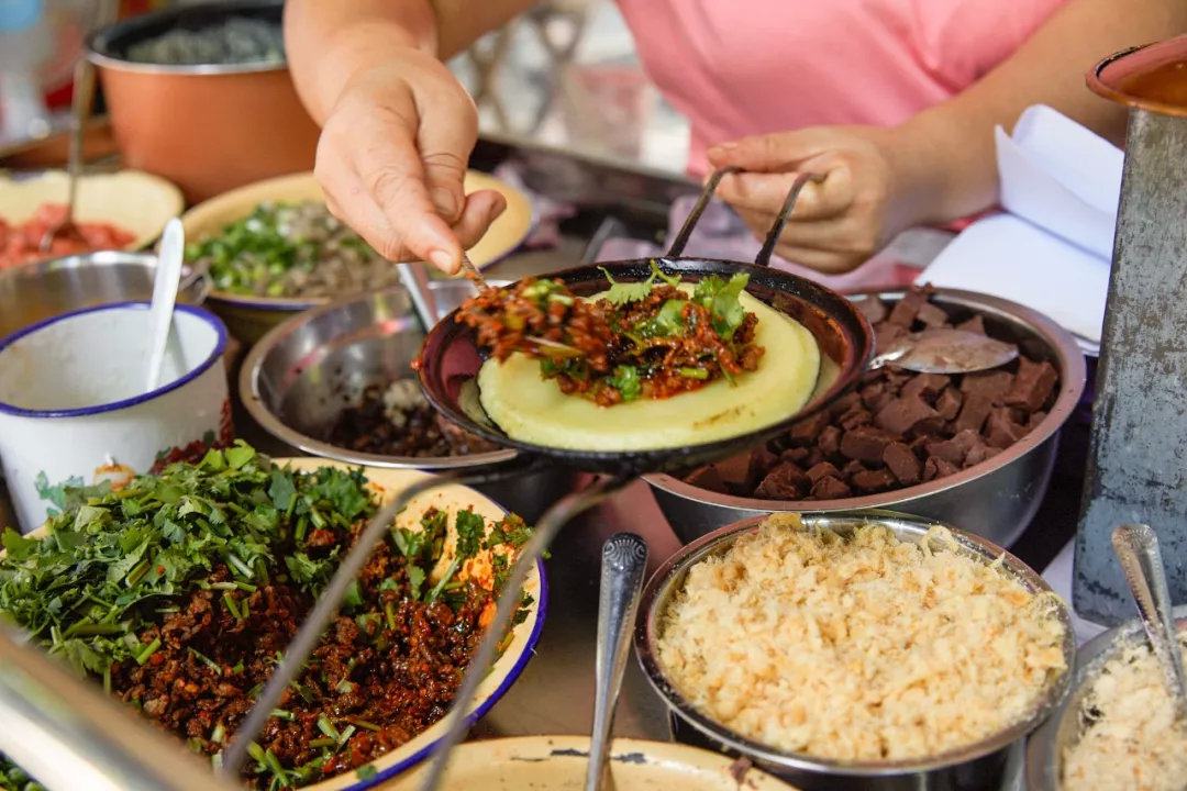 在夜市里随便找个位子,呼噜噜地嗦一碗粉,汤头浓且杂,伴着两旁小贩的叫卖。倒也别有一番风情。