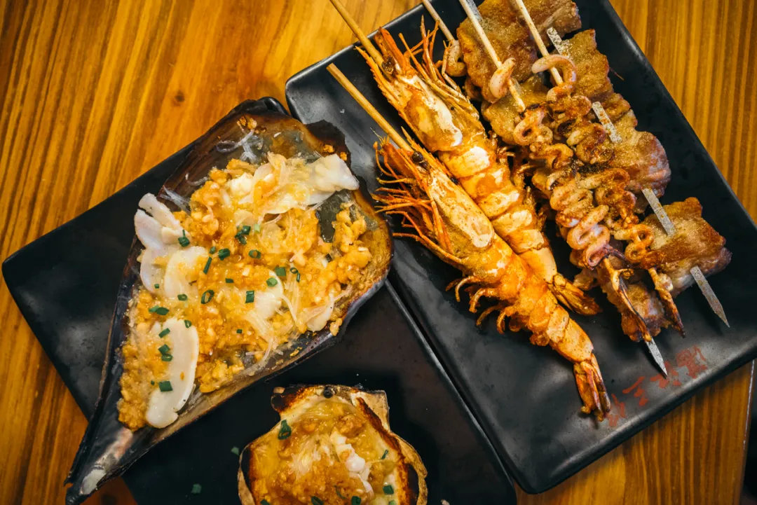 作为沿海城市,青岛的海鲜是不容错过的,烤生蚝、烤扇贝、各式小海鲜,仿佛能闻到大海的味道。
