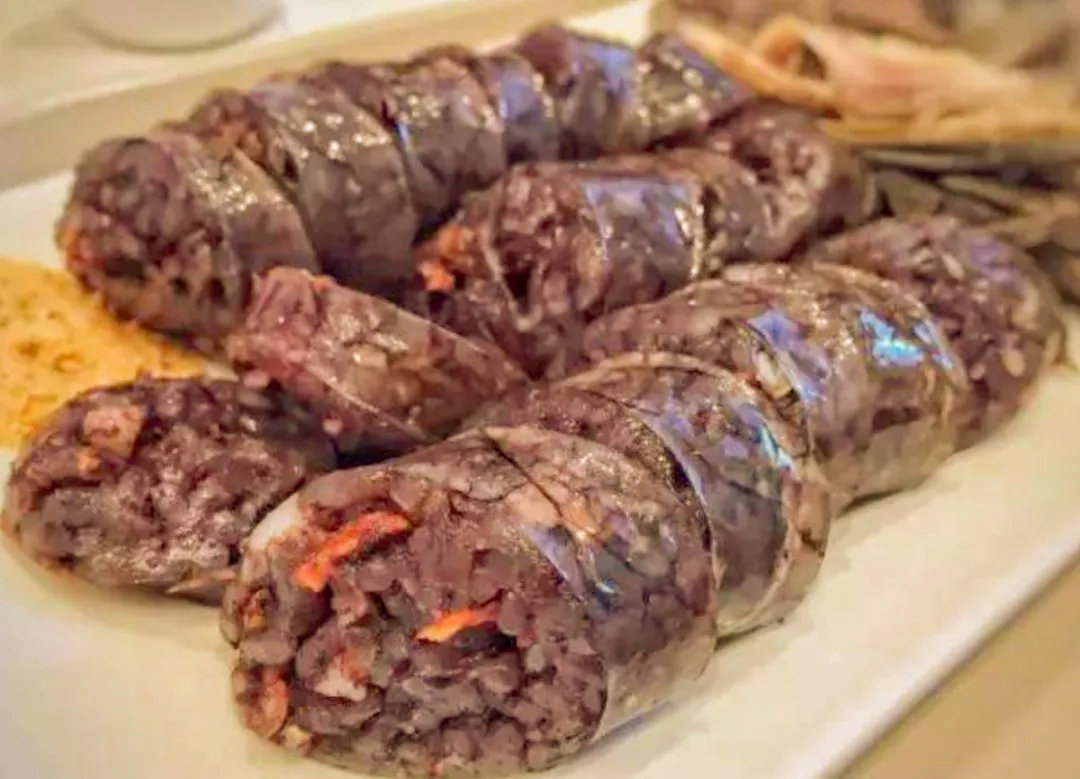 本地特色的猪血糯米肠,切开来,和洋葱一起炒香,看似黑暗,却意外好吃,口感很软嫩。