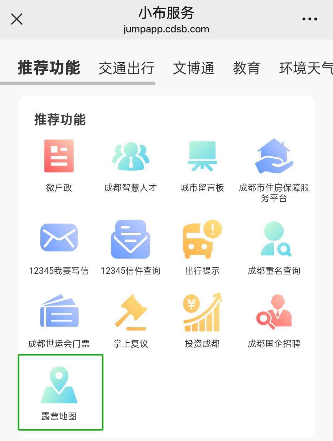 进入后,在“推荐功能”里找到“露营地图”,即可随时查询公园(绿道)露营点位信息