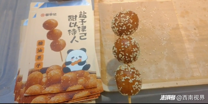作为川渝地区家喻户晓的传统小吃,糖油果子以糯米为主料,经油炸后裹上红糖浆,外酥里糯、甜而不腻,是不少人记忆中的童年味道。此次蓉李记将这道经典美味带入重庆,不仅延续了现炸现制的工艺,更以“零门槛”福利邀请重庆的市民尝鲜。