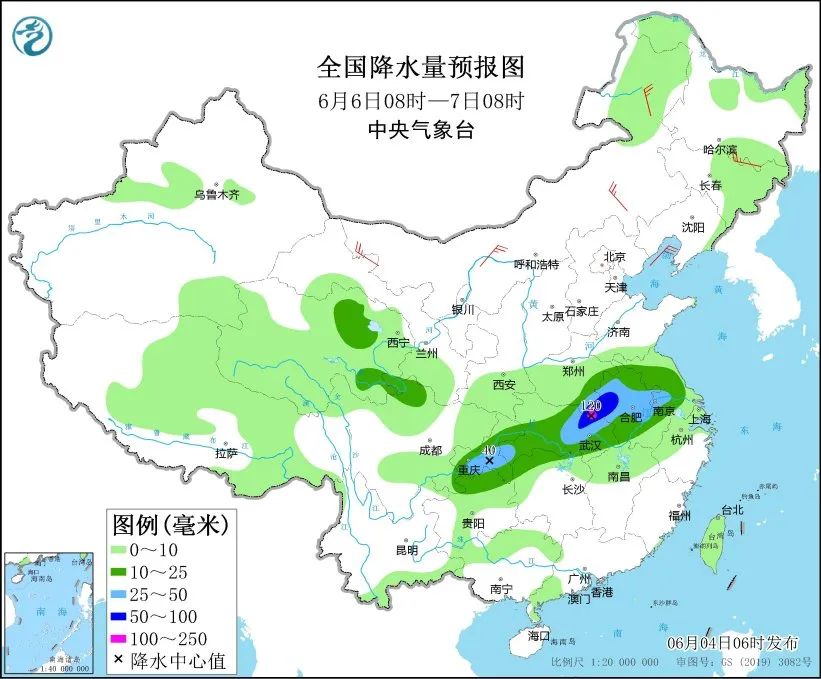 6日至7日,青海北部和东部、黄淮南部、江淮大部、江汉大部、西南地区东部等地部分地区有中到大雨,其中,河南东南部、安徽西北部、湖北东北部等地部分地区有暴雨或大暴雨(100~120毫米)。