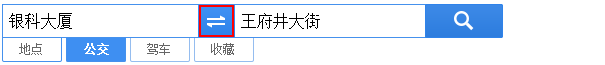 在搜索框中选择“公交”标签,输入起点和终点的位置信息,获得线路查询结果。