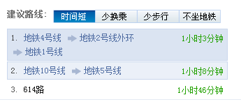 在左侧文字区路线方案上方,可以根据不同需求选择相应的线路优化方案,获得更合适的建议路线。