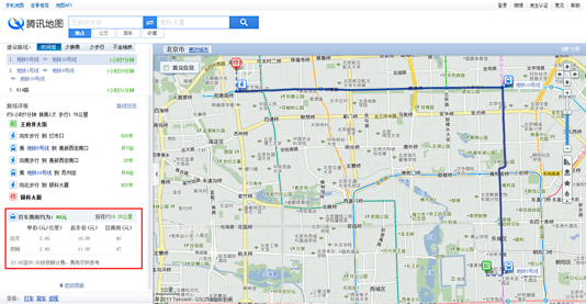 在查询公交或者驾车线路结果时,左侧文字区下方会给出相应的打车信息。