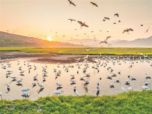 开州区汉丰湖国家湿地公园,优美的生态环境,吸引了众多鹭鸟来此觅食、嬉戏。特约摄影 王晓宇/视觉重庆