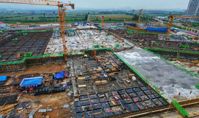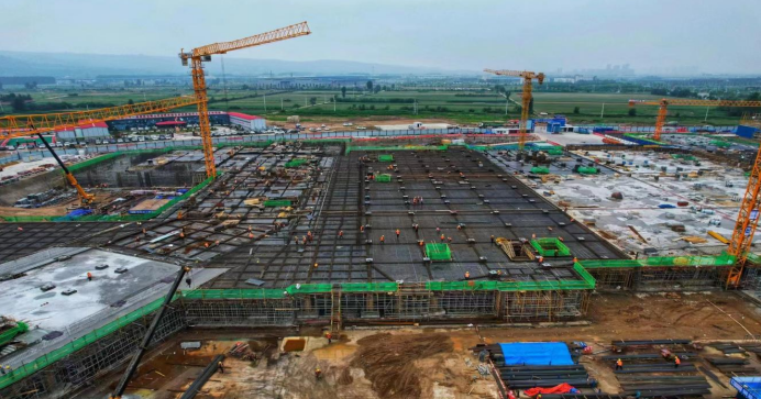 与此同时,在宝鸡市妇幼保健院高新院区项目现场,机械轰鸣、工人穿梭,单体楼栋底下车库部分施工已完成,正在进行隔震层和地上结构施工。计划今年年底主体封顶,2025年5月竣工。