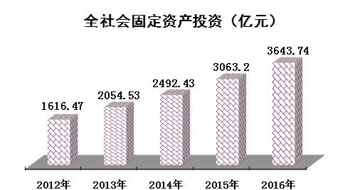 全年全社会固定资产投资完成3643.74亿元,比上年增长19.1%。其中,固定资产投资(不含农户)3584.67亿元,增长21.0%。