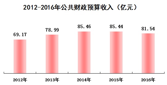 全市财政总收入231.92亿元,同比增长5.7%。其中,公共财政一般预算收入81.54亿元,同口径增长10.8%。公共财政一般预算收入中,税收收入60.78亿元,增长13.9%;非税收入20.76亿元,下降35.3%。全市财政支出338.92亿元,增长12.9%。其中,民生支出281.0亿元,占财政支出的82.9%。