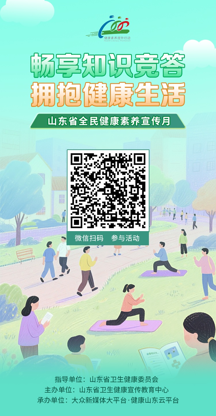 据了解,此次山东省全民健康素养宣传月有奖知识竞答活动由山东省卫生健康委员会指导,山东省卫生健康宣传教育中心主办,大众新媒体大平台·健康山东云平台承办。活动旨在通过线上答题形式,营造全民关注健康、学习健康知识的良好氛围,助力健康中国及健康山东建设。