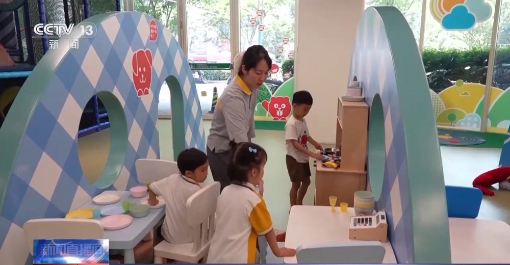 总台记者 王雨桐:社区为了缓解家长们的育儿压力打造了一个游乐场所,这里还有专业的陪护人员来保障孩子们的安全。