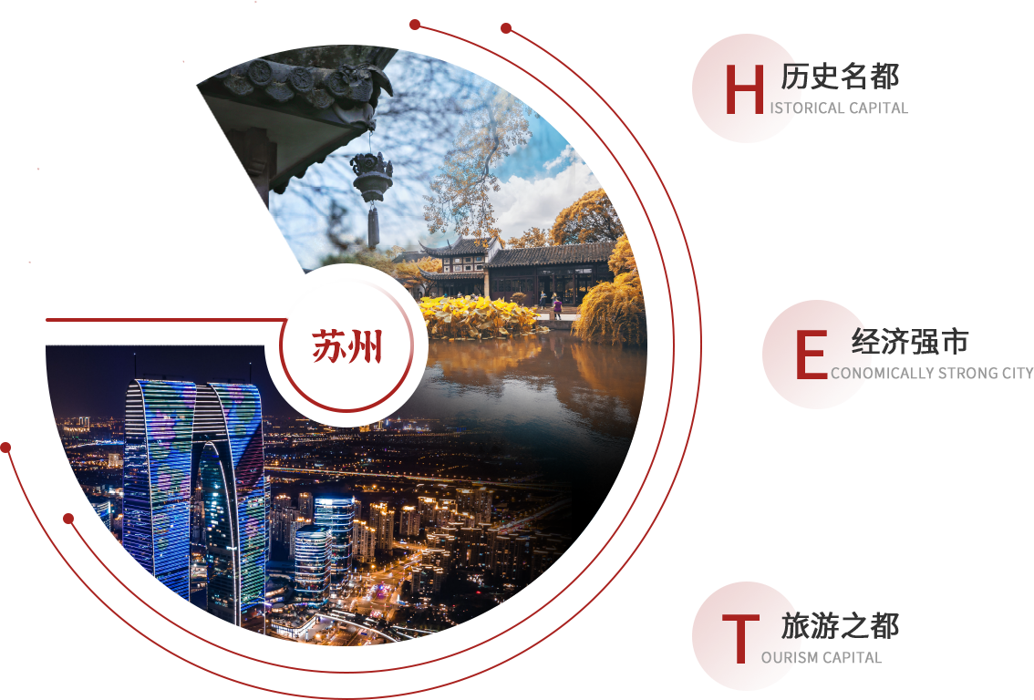 苏州是首批24座国家历史文化名城之一,著名的江南水乡,有“人间天堂”的美誉。苏州城始建于公元前514年,距今已有2500多年历史。从春秋伍子胥建阖闾大城至今,苏州城基本保持着“水陆并行、河街相邻”的双棋盘格局,以“小桥流水、粉墙黛瓦、史迹名园”为独特风貌。苏州孕育的昆曲、评弹、园林和苏绣,已成为世界辨识中国的鲜明符号。