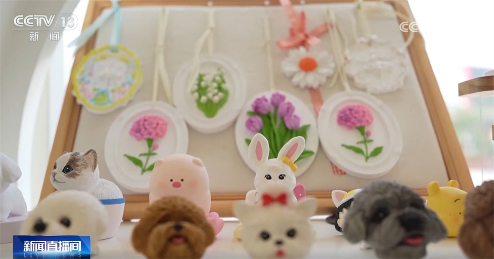 跟随镜头,我们首先看到的是社区工作者根据居民反馈搭建而成的一座共享图书馆。这里有居民们捐赠的爱心书籍,还有这些精美的手工艺品是居民在工作者开设的课程下完成的。这里的课程是工作者收集居民反馈开设的,有特长的居民会成为授课老师。