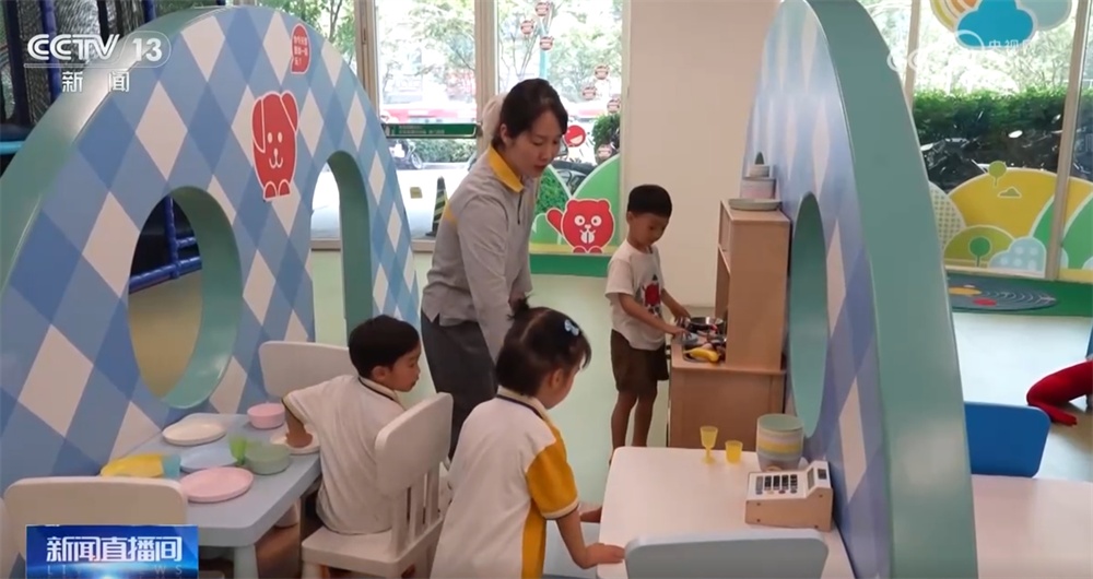 最后,我们跟随记者来到了一个孩子们的游乐园,这里是社区为了缓解家长们的育儿压力打造的一个游乐场所,还有专业的陪护人员来保障孩子们的安全。
