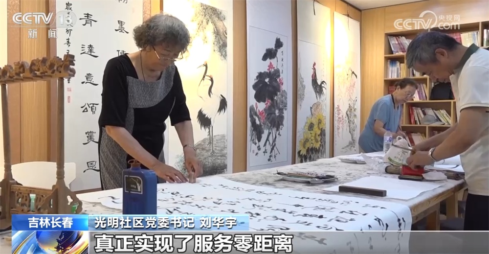 除了合唱室,党群服务中心里分布着书法绘画室、读书阅览室等,每周这里还会举行爱心理发、义诊、健康讲座。光明社区建设于2019年,其中老年人占比达到13%左右。