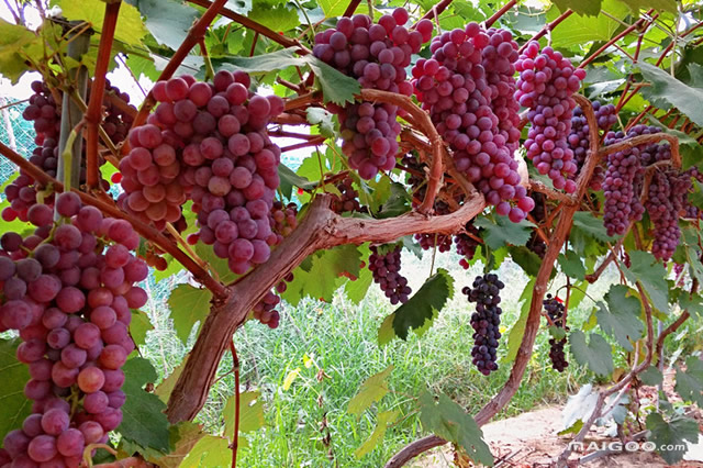 吐鲁番在新疆中部的低洼盆地上,被称为“火洲”。是我国葡萄主要生产基地,总产量占全疆的52.84%,是全中国的五分之一。由于这里气温高、日照时间长、昼夜温差大,特别适合葡萄的生长,因而瓜果丰茂,又因独特的地理位置使吐鲁番的地下水贮量丰富,所以水果中的含糖量非常高。 现有葡萄品种有无核白、红葡萄、黑葡萄、玫瑰香、白布瑞克等500多种,仅无核白葡萄就有20个品种,它的含糖量可高达22%-24%。堪称“世界葡萄植物园”。 查看详细