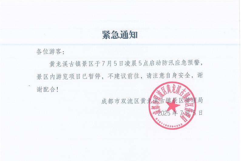 为确保广大游客的人身财产安全,大飞水景区(前山)2025年7月5日临时关闭一天,预计7月6日可以开放。具体情况请拨打景区咨询电话028-88300005了解实时情况。