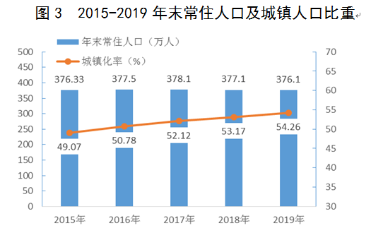 年末全市常住人口376.10万人,城镇人口比重为54.26%。全市人口出生率9.7‰,死亡率6.19‰,人口自然增长率3.51‰。