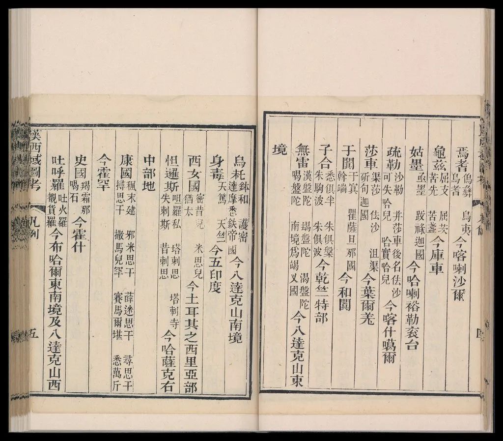 作者还细心的标出了唐代,中国人所认识的世界地理名词,比如怛罗斯对应为清代的塔拉斯,将康国准确的对应为撒马尔罕,当然有的对应并不一定准确,比如所谓的西女国很可能是玄奘在进入希腊化世界故地时,听到了类似于亚马逊女战士传说的故事,于是附会出来的神话故事,但是在这里却被有闻必录的李光廷煞有介事的对应到土耳其境内。