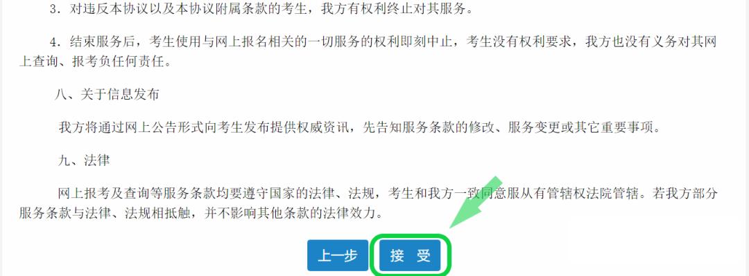 阅读“专业技术人员资格考试网上报名协议”,拉到最后点击“接受”。