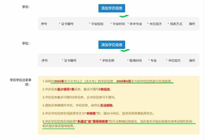 (3)学信网无法查询的学历(如高中、中专、2002年前毕业的大专以上学历等)需要到现场验证,但也要先在线上如实填写。