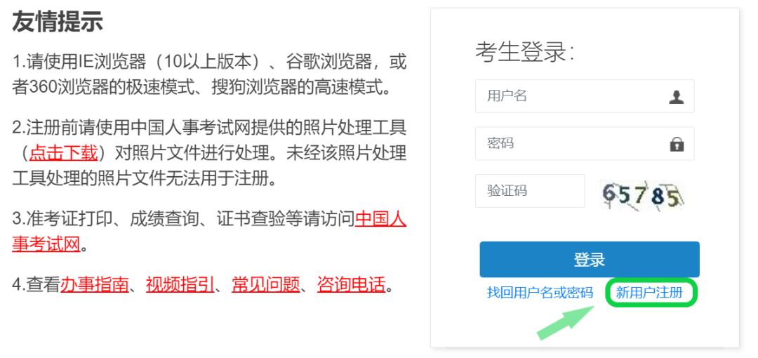 在“全国专业技术人员资格考试报名服务平台”页面,点击“新用户注册”。