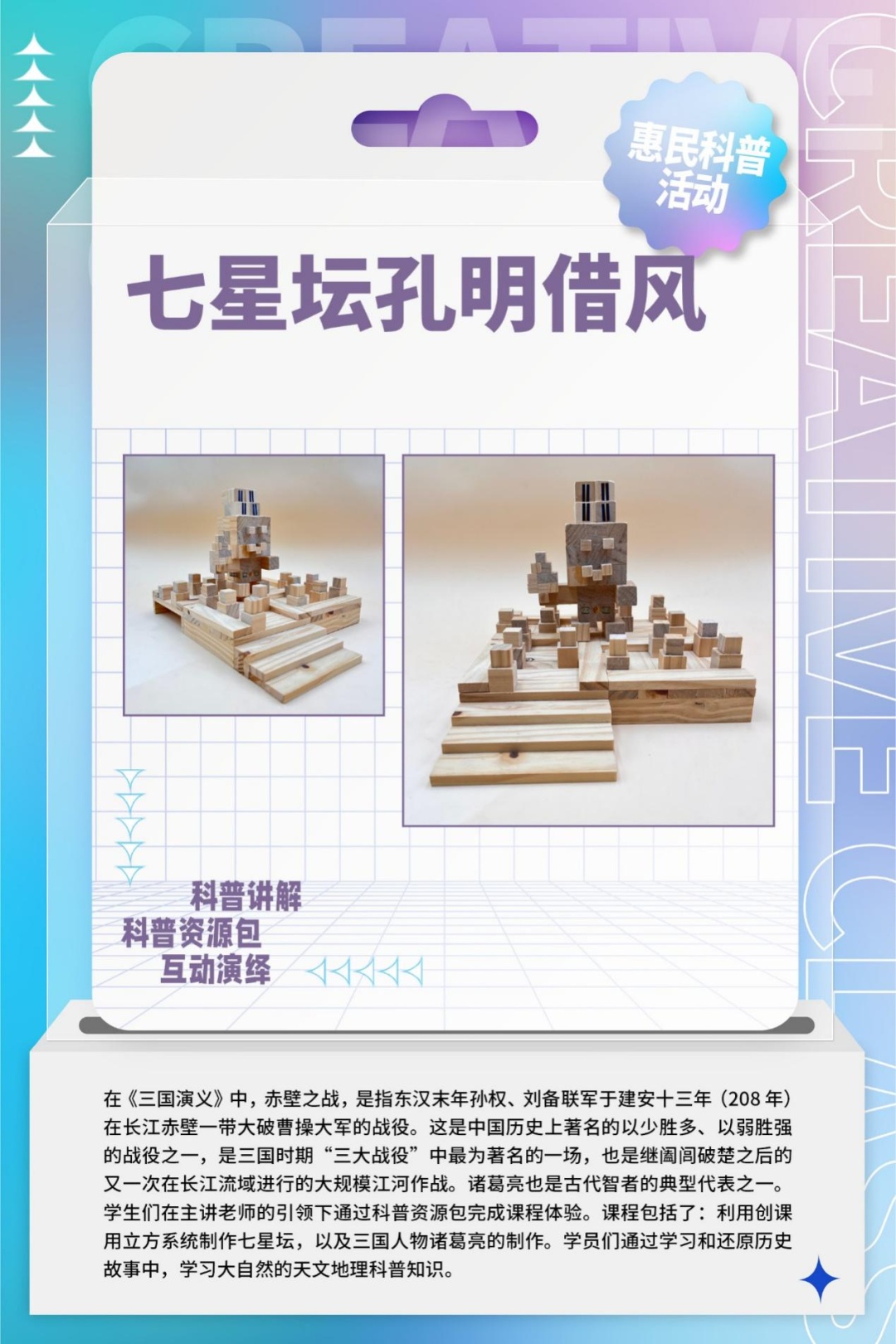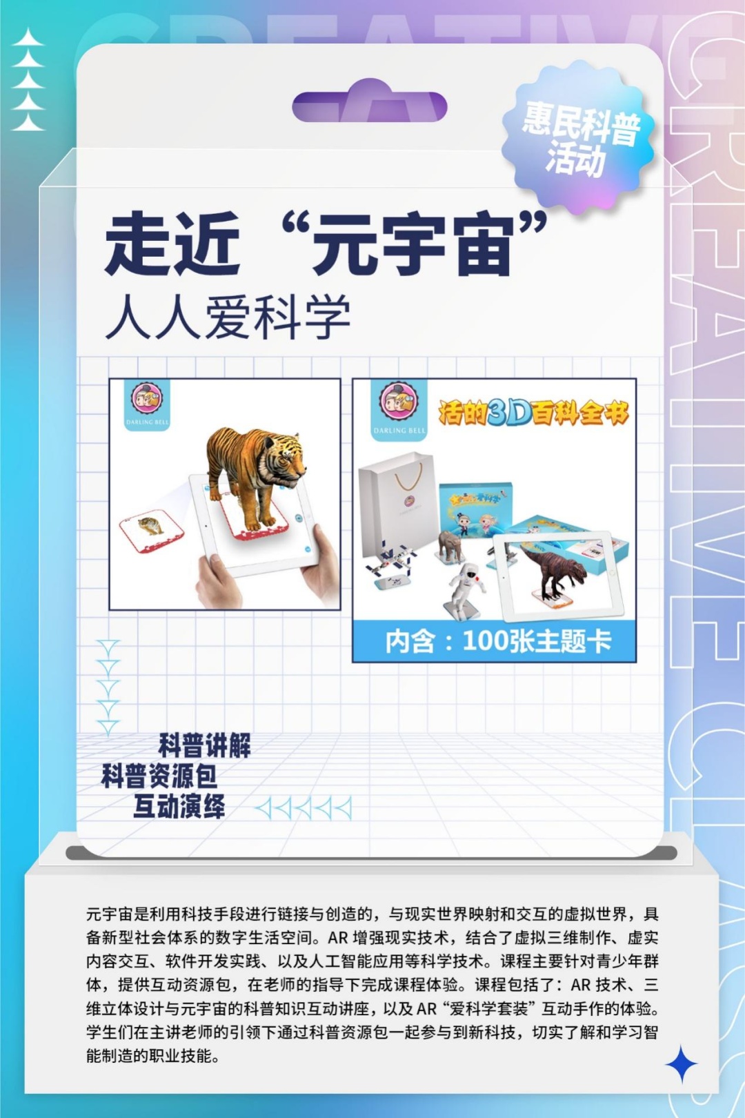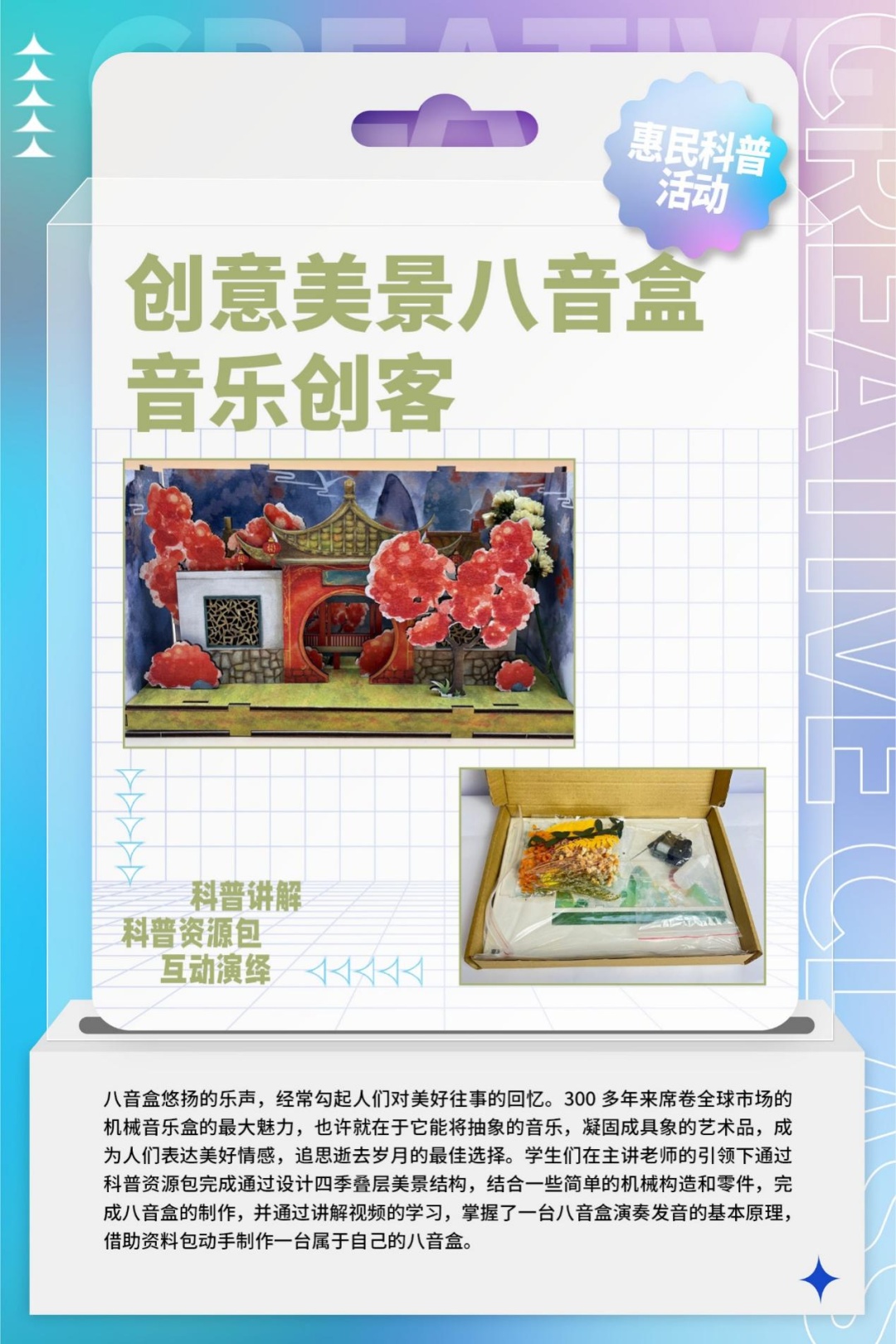 根据各社区书院日常开展动手类活动的需求,适合不同年龄段受众动手制作类或互动体验的活动资源包,每个资源包都配套一个视频或者远程教学课程。通过动手制作和科普体验活动,寓教于乐激发青少年好奇心和想象力、丰富社区居民的科普学习内容、增强市民对科学的兴趣和动手能力。