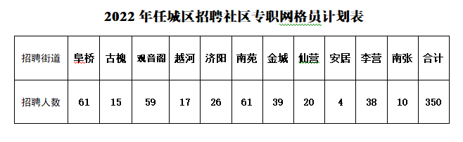 附件1:2022年任城区招聘社区专职网格员计划表