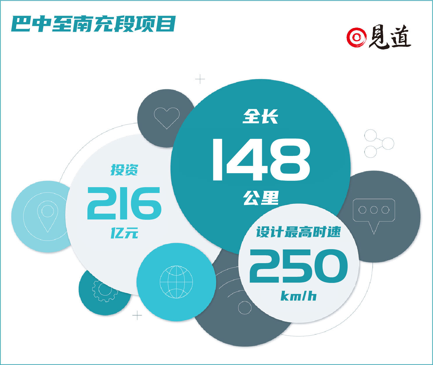巴中至南充段项目正线全长148公里,投资216亿元,按时速250公里、客专双线设计建设。而汉中至巴中段线路长约164公里,投资约249亿元。目前,巴中、汉中、宝鸡三市发展改革委已就共同推动宝鸡经汉中至巴中铁路达成一致意见,将按250公里以上的时速标准共同向上汇报,推动宝鸡至汉中段早日列入国家规划并开工建设。