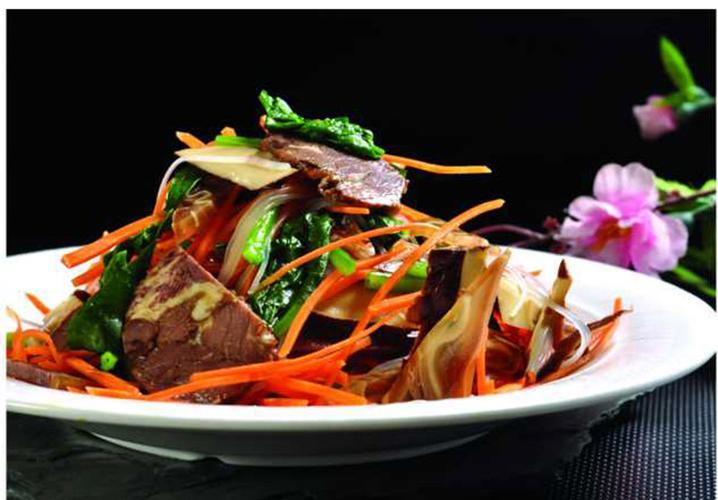 天水酒碟:是以天水本地产蔬菜胡萝卜、菠菜、绿豆芽配合耳丝、口条、肝片而制成的特色小菜。天水酒碟的食材搭配以胡萝卜丝、菠菜和绿豆芽为主,再配以其他配料如耳丝、口条和肝片等。