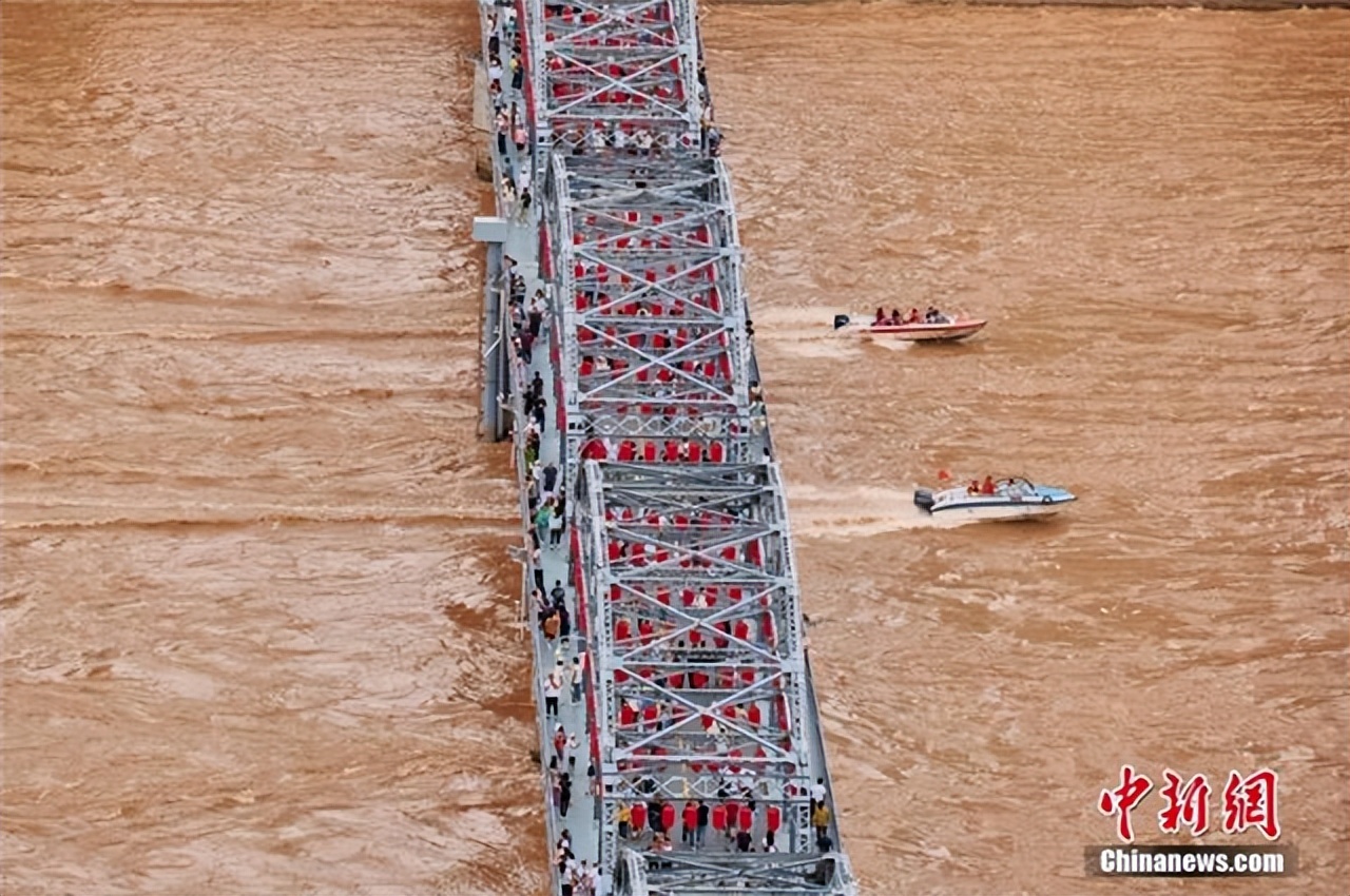 游客在中山桥下的黄河里乘坐快艇。图/视觉中国