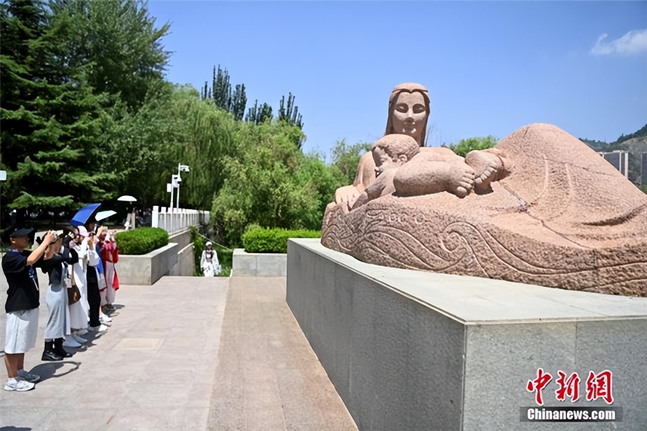 矗立在黄河岸边的“黄河母亲”雕塑由一个母亲和一个婴儿组成,母亲身体侧卧怀抱婴儿,就像黄河呵护着兰州。中新社记者 九美旦增 摄