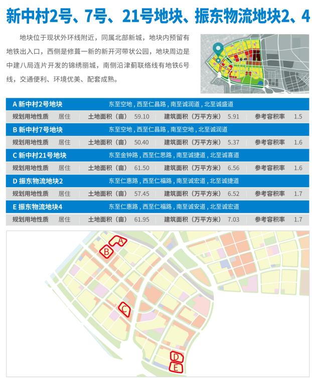 该区域重点推介新中村2号、7号、21号地块,振东物流地块2、地块4共计五宗地块,可用地面积290亩。