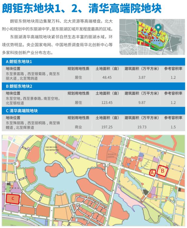 该区域重点推介朗钜东侧地块1、地块2、清华高端院地块,东丽湖1126A地块、B地块、C地块共计六宗地块,可用地面积785亩。