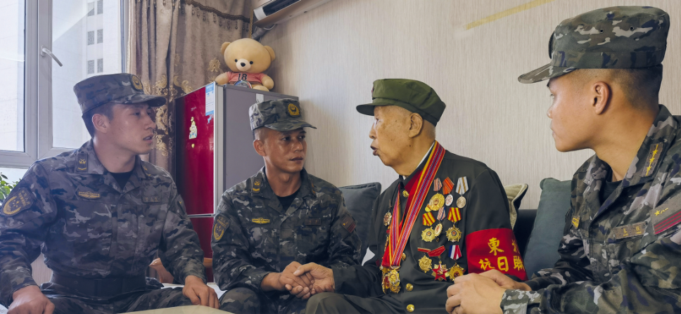 中队战士郭钟亮深情回忆前年八一建军节当天,原琼崖纵队百岁老兵王示足给他们上的一堂课:“王老坐着轮椅,声音不大,我们却听得震撼。琼崖纵队历经大革命、土地革命战争、抗日战争、解放战争的洗礼,无数敌人都想消灭他们,却始终没有得逞……”
