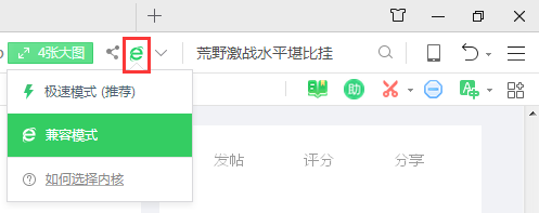 由于部分网页(例如论坛、网银等)在极速模式下出现兼容性问题,显示不正常,这时您可以手动切换到兼容模式来浏览网站,如下图所示。