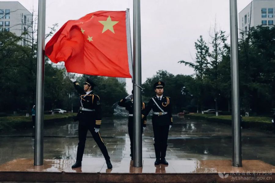 【西北大学】10月1日,该校在长安校区中心广场举行升国旗仪式,各院(系)师生代表、团属学生组织代表200余人到场观礼。国旗护卫队队员们不畏风雨,守护着国旗铿锵走来,威风凛凛,一往无前。忆往昔,71年风雨沧桑;看今朝,祖国腾飞再谱华章。伴随着国歌,到场人员全体肃立,凝视国旗的冉冉升起,自豪之情油然而生,戴着红领巾的小学生们也敬起少先队礼,国旗舒展,国家富强。国旗到达顶点后,师生纷纷与国旗合影,在这个特殊的时刻,国庆恰逢中秋,“国”遇上“家”,国之梦,凝聚了家的幸福和期盼,家之梦,展现了国的文明与荣耀。