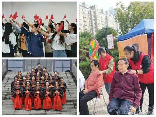 【陕西艺术职业学院】该院师生通过原创MV、学生联谊会、参观爱国主义教育基地、观看主题电影等厚植爱国主义情怀,弘扬中华优秀传统文化。其中,该院音乐系教师集体原创MV《初心永恒》,用激昂奋进的旋律,饱含深情的歌声,颂扬党的辉煌历程,讴歌祖国辉煌成就,激励人们担当、奉献,奋斗圆梦,祝福祖国。该院团委组织各系少数民族学生开展联谊活动。活动中,藏族舞蹈《情满天路 扎西德勒》、蒙古族歌曲《欢乐的那达慕》、舞蹈串烧《盛情草原》、朝鲜族独舞《丽人》、维吾尔族舞蹈《天山姑娘》先后登场,让同学们沉浸在少数民族文化独特魅力之中。互动环节,同学们在有趣的民族游戏中相互增进了解,增强中华民族共同体意识。最后,活动在全体学生同唱《歌唱祖国》中落幕。该院舞蹈系直属党支部于9月29日,到陕西回归儿童救助中心为孩子们送去爱心礼物,近距离了解孩子们的生活起居、学习娱乐等情况,并送上双节美好祝福,与孩子们提前共度双节。该院影视系组织学生观看影片《我和我的祖国》,通过新中国成立以来7个历史性瞬间,7组普通人的故事,见证新中国发展光辉历程,激发学生爱国热情,砥砺强国之志、实践报国之行。该院基础部直属党支部,机关党总支第七党支部、第八党支部先后到八路军西安办事处纪念馆、西安事变旧址等参观学习,缅怀革命先辈,坚定理想信念,接受深刻爱党爱国教育。该院机关党总支第二党支部开展“弘扬爱国主义,牢记初心使命”主题党日活动,支部全体党员集体观看抗日影片《八佰》,重温那段山河喋血、壮怀激烈的抗战历史,守初心、担使命。之外,该院还通过电子显示屏,学院官网、官微、今日头条等新媒体平台,广泛宣传,营造良好节日氛围。