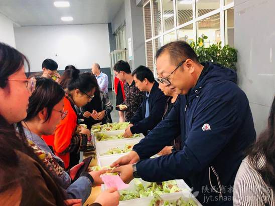 西安邮电大学学校领导、老师和校友一起陪在校学生包饺子现场