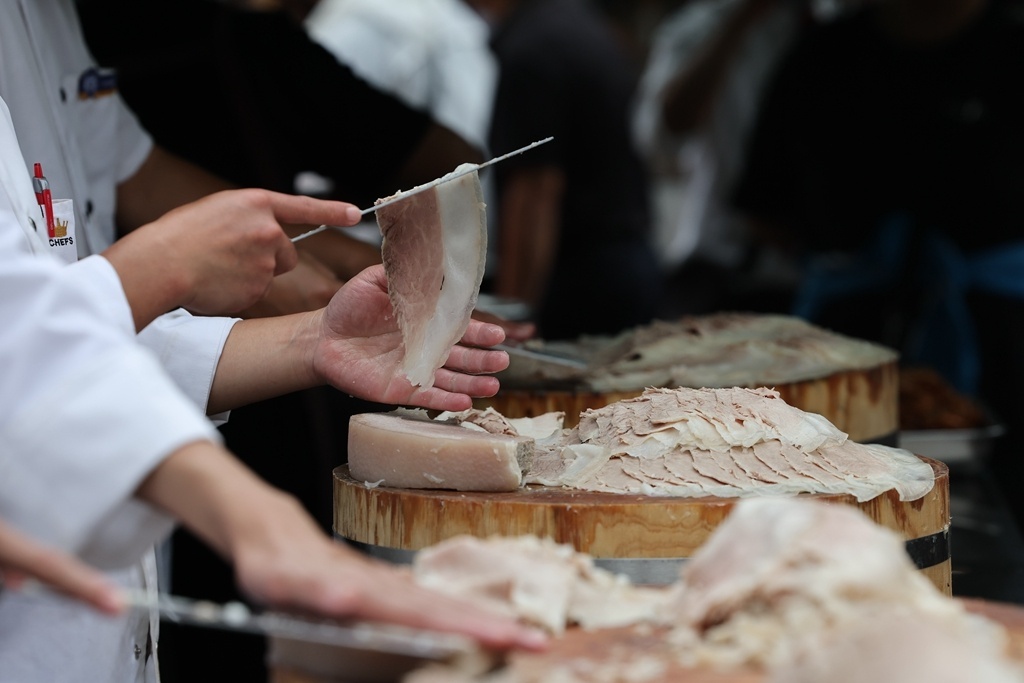 宜宾因水而兴,饮食文化丰富多彩。因地处川南,宜宾自古便是商贾往来,贸易繁荣之地,各地的美食在此汇聚。宜宾燃面,热辣爽口,令人唇齿生香;李庄白肉,刀工精湛,入口滋味绵长;双河凉糕,清凉甘甜,令人回味无穷……更有全竹宴、川南请春酒、苗家长桌宴、沙河豆腐宴、高县土火锅、乌鸡宴等宜宾特色美食声名远播。