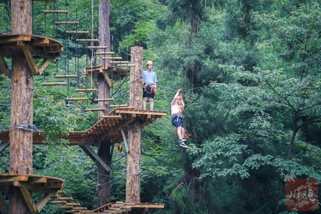 中午便在溶洞大厅品尝苗家长桌宴,苗家米酒和高山流水敬酒仪式是兴文最具特色的人文体验。下午体验户外体验项目,包括丛林穿越、飞拉达、溜索、滑草和步步惊心五个项目,让你尽情释放激情,在拥抱绿色、回归自然的同时,挑战自我极限。(宜宾观察 侯晓梅)