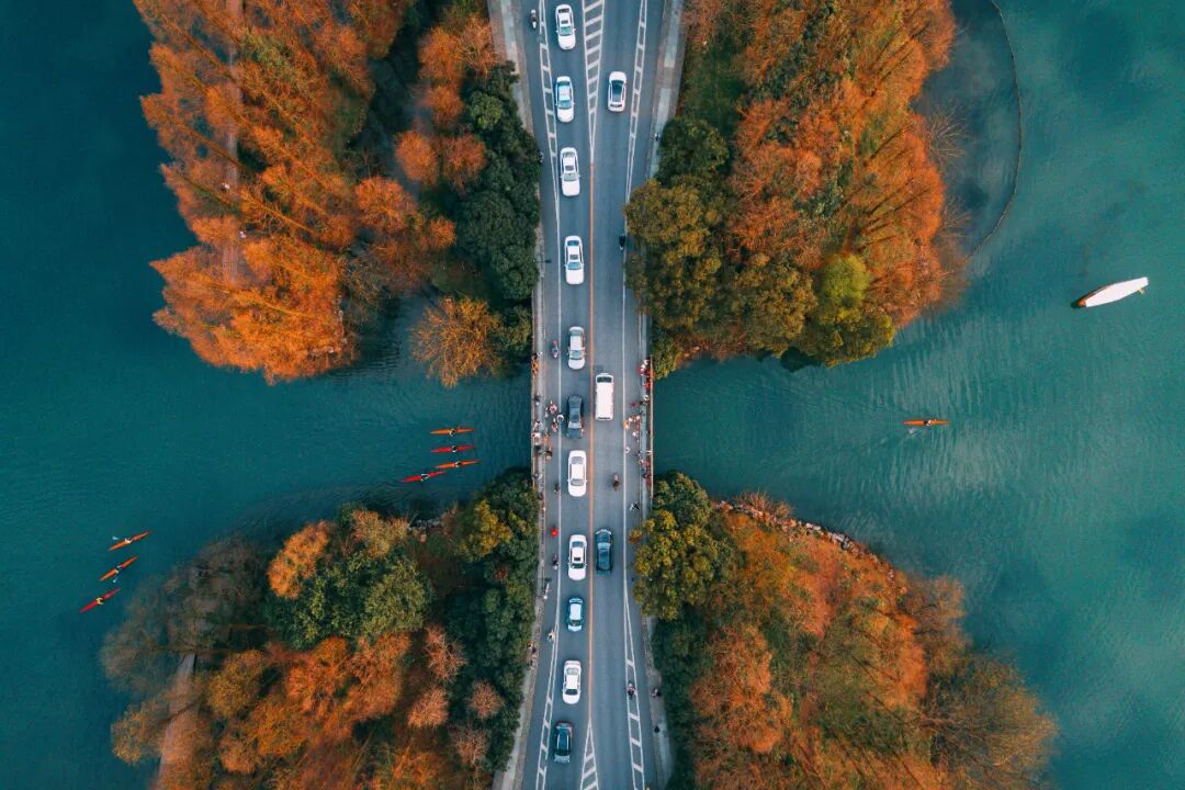 杭州秋天的如画胜景,都藏在西湖杨公堤。每到秋天,杨公堤弯曲的堤岸上,柳树、梧桐、樟树的叶子被秋风吹得摇曳生姿,换上了五彩斑斓的秋装,与波光粼粼的湖水交相辉映,景色美不胜收。沿着杨公堤散步,是体验西湖秋天风光的绝佳方式。