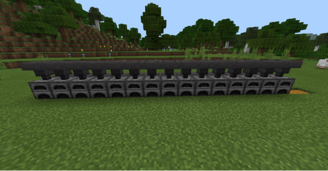 在这一排漏斗上方放置熔炉,并在熔炉后方和上方再放置一排朝向熔炉的漏斗