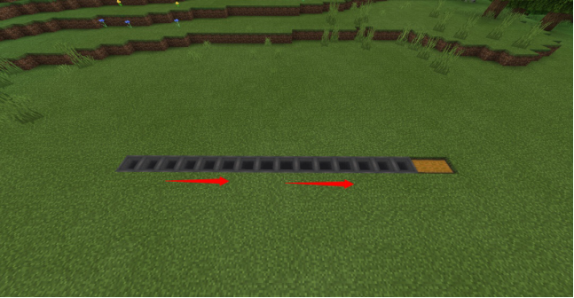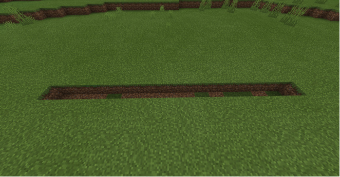 先在地面挖一条15格长坑,格数也可以自己定~