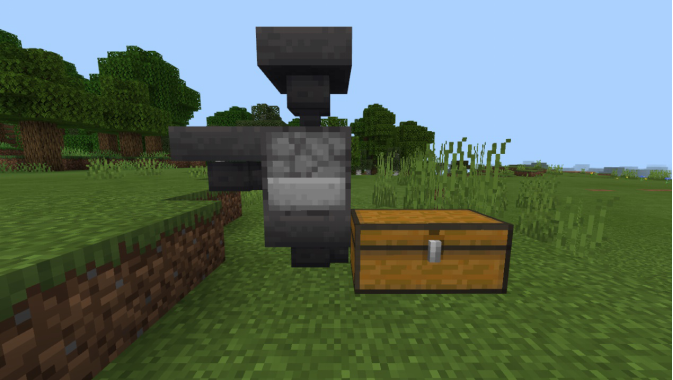 然后我们来到有箱子的那一端,在漏斗旁如图放置普通方块
