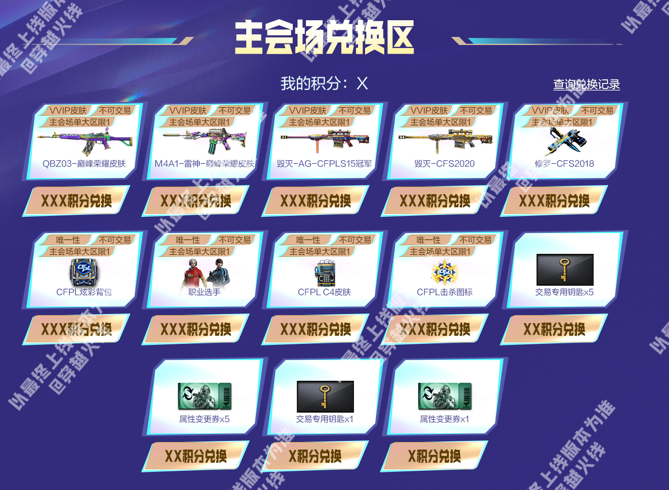 注:M4A1-雷神-巅峰荣耀皮肤、毁灭CFS2020皮肤,三个分会场总限兑换1个。
