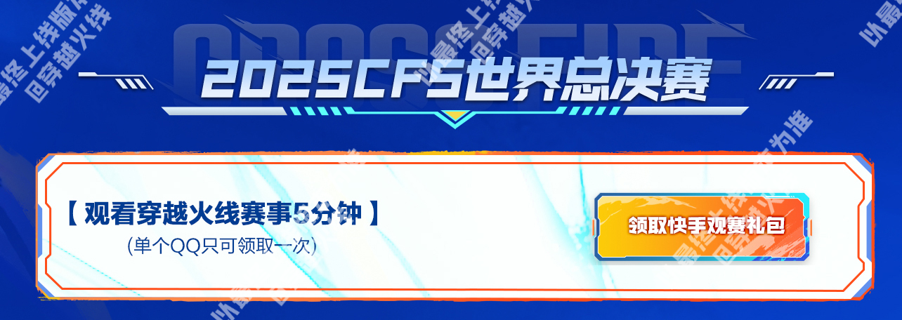 CFer在快手平台观看穿越火线赛事达到对应时间,即可领取快手观赛礼包。单账户限领一次。