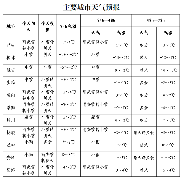 预计今日陕西省有大范围雨雪降温天气 局地有暴雪