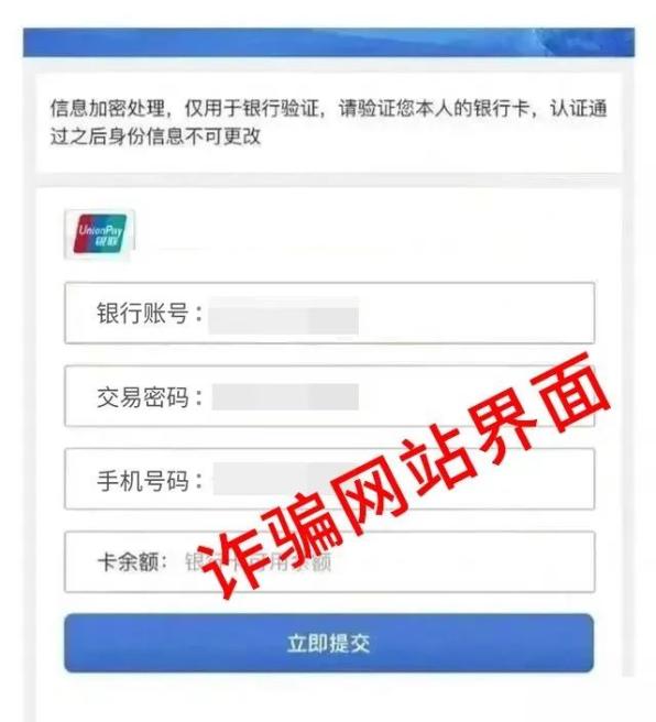 如果您不慎点击短信中的链接进到陌生网站页面,一旦看到该网站需要输入个人信息、银行卡账号、密码等选项,也可以100%确定是诈骗。